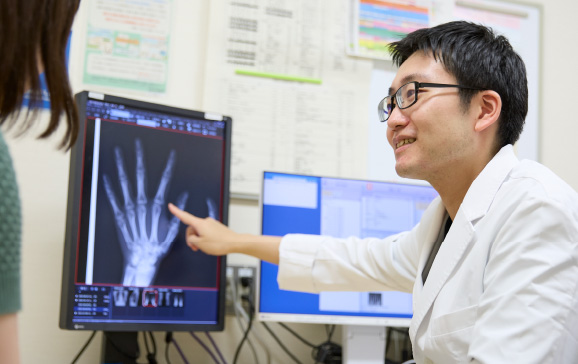 外来・入院診療では、リウマチ専門医を中心に、看護師、薬剤師、リハビリスタッフ、管理栄養士など多職種が連携し、患者さん一人ひとりに応じた丁寧な医療を行っています。